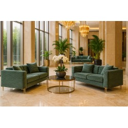 Sofá de diseño 3 plazas, corduroy verde claro. Sofá de 2 plazas a juego. Otros colores disponibles