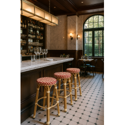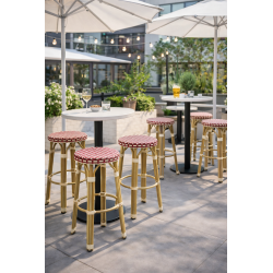 Taburete de diseño para exterior, armazón de aluminio y ratán beige y rojo - tal cual imagen -. Sillón y Silla a juego