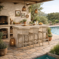 Taburete de diseño, tratamiento anti UV, polipropileno inyectado de color tórtora. Uso en exterior e interior. Silla a juego. Otros colores disponibles.