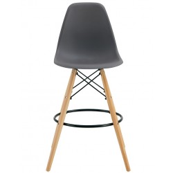 Taburete de diseño, madera, carcasa de polipropileno de color gris oscuro. Sillas y sillones a juego.