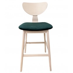 Taburete de diseño, multiusos, armazón de madera maciza de hevea, asiento y respaldo de contrachapado de madera de hevea, barnizado natural, tapizado velvet verde oscuro. Sillón a juego