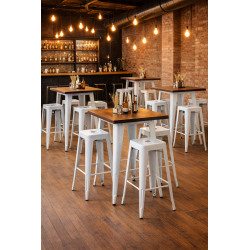 Taburete de diseño, estructura de acero, pintado en blanco. Uso en interiores o exteriores. Otros colores disponibles. Mesa, silla y sillón a juego