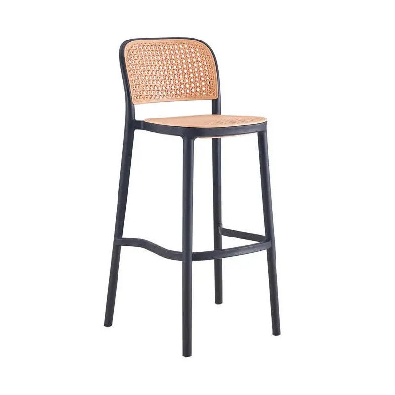 Taburete apilable, polipropileno negro y beige. Uso en exterior e interior. Sillones a juego.