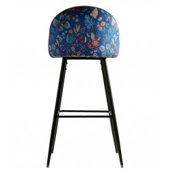 Taburete de diseño, armazón metálico con acabado epoxi negro, asiento y respaldo tapizados en terciopelo amarillo, trasera en tejido decorado carnaval. Otros colores disponibles. Silla a juego