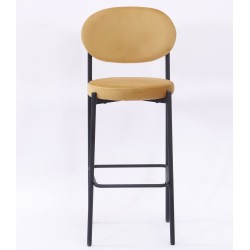 Taburete de diseño, armazón metálico con acabado epoxi negro, asiento tapizado en terciopelo de color amarillo. Uso en interiores. Otros colores disponibles. Silla a juego