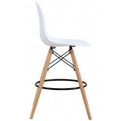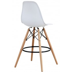 Banco de bar moderno, madeira de faia e metal, assento polipropileno branco.