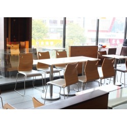 Cadeira moderna, empilhável, assento laminado HPL ( alta pressão ) semelhante à formica.