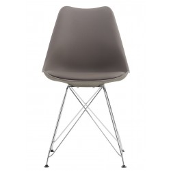 Cadeira moderna, cromada, polipropileno e coxim cinza escuro