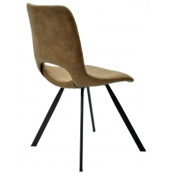 Cadeira moderna, pele sintética castanha clara, base de metal com acabamento epoxi preto. Banco bar combinando