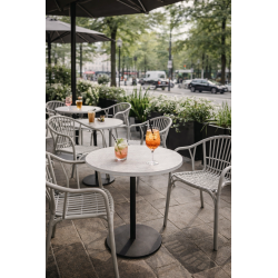 Cadeirão moderno, empilhável, para utilização no exterior, polipropileno cinza claro.