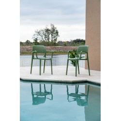 Cadeirão moderno, empilhável, para utilização no exterior, polipropileno verde. Banco bar combinando